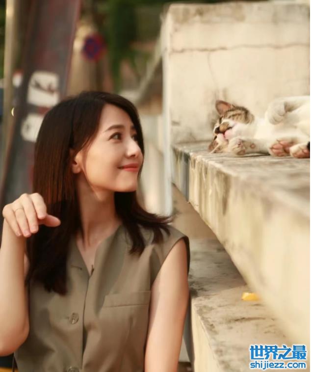 高圆圆蹲路边逗野猫!靠在破旧墙壁上不嫌脏,皮肤白皙五官超精致 ...