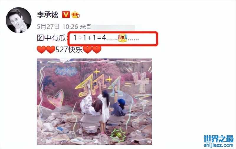 据悉,今年李承铉卡点527官宣戚薇二胎,他晒出了一张一家三口的全家福,并配文“1+1+1=4”暗示戚薇二胎,并深情表白妻子,照片里一家看起来很是幸福。