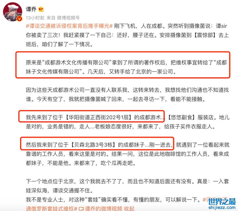 这一次,就是成都电视剧委托成都游术公司进行维权,网络上利用《谭谈交通》节目视频获得收益的个人or企业,都是游术公司的起诉对象。