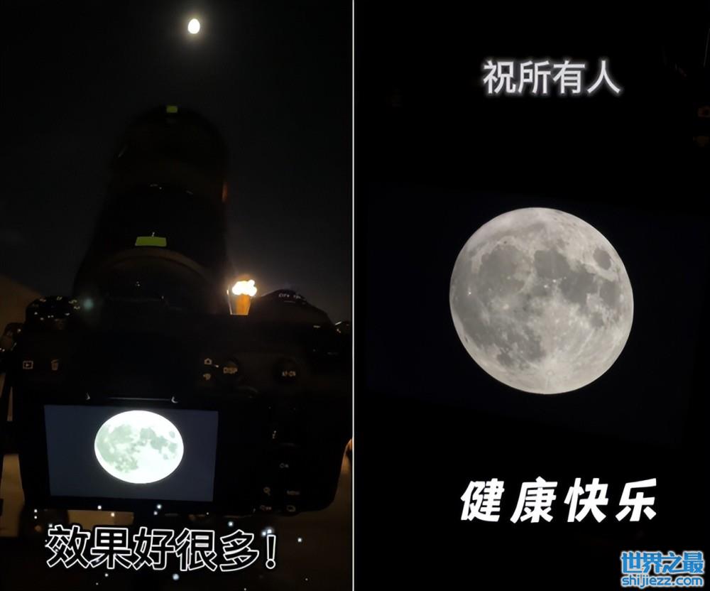 在拍摄完毕后,刘德华还大方地和大家分享了他的拍摄成果,专业摄像机里的月亮像一个透明的圆球一样散着清冷的光,斑驳的明暗对比让人惊叹于月球的美丽,刘德华还不忘贴心地祝福大家:“健康快乐”。