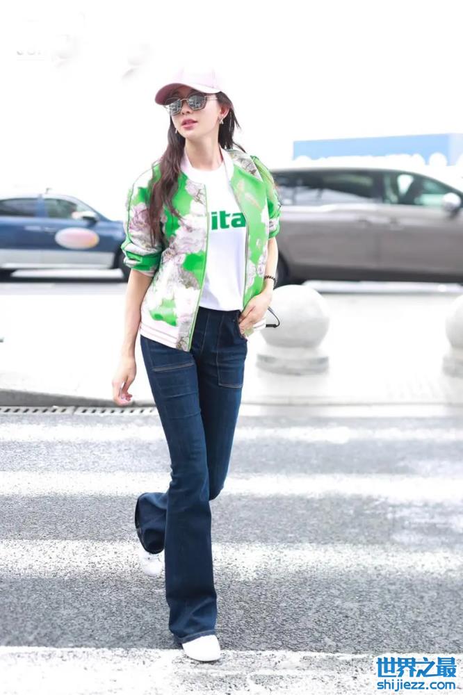 其实不穿高跟鞋的杨幂一双大长腿依然亮眼,私服装扮也要把大长腿秀出来。