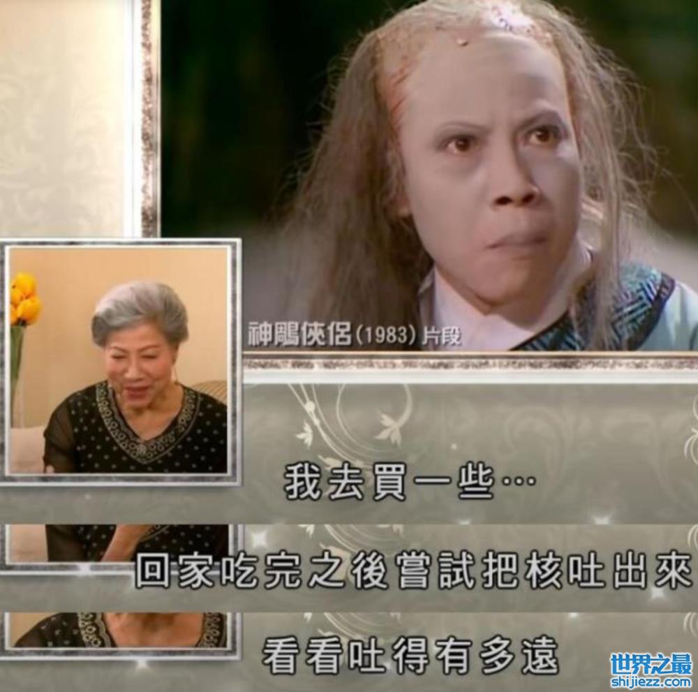 在年轻一代的观众心中,她最经典的角色无疑是《神雕侠侣》里的裘千尺,每次她吐桃核,都能把人吓得一颤。