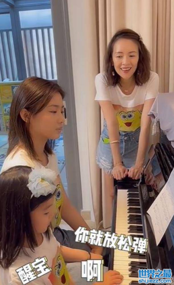 而在章子怡生日的时候,小苹果和妹妹醒醒双人弹奏了一段《天空之城》送给母亲,小苹果和醒醒都与章子怡穿着同款的母女装,两人弹琴配合得默契十足,可见见得平时相处也是很融洽。