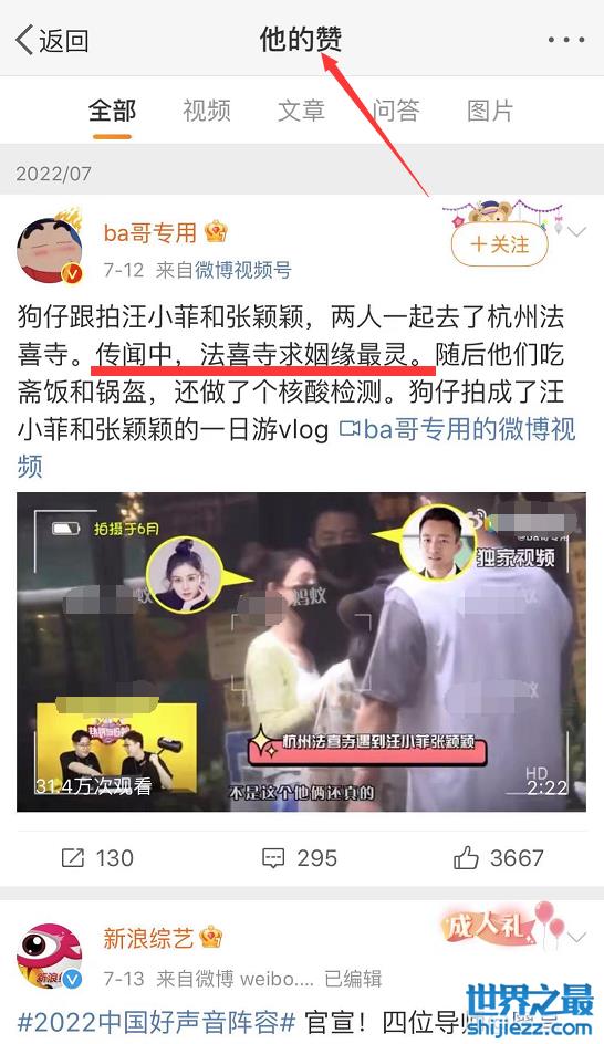 如果说这还不算是证明他们没分手的话,那就看看汪小菲的V博点赞,他亲自点赞来证明和张颖颖确实去求姻缘,看来大S再婚后,汪小菲也坐不住了,也想跟90后高挑的美女早日结婚,有个好姻缘。
