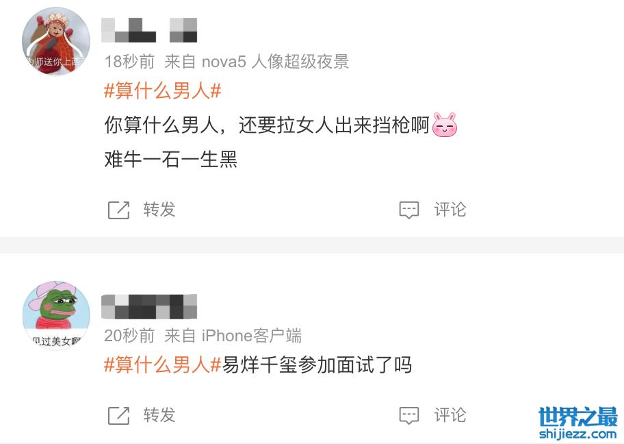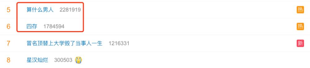 顺着往下看,就会发现下方有#算什么男人#和#四存#两个词条。
