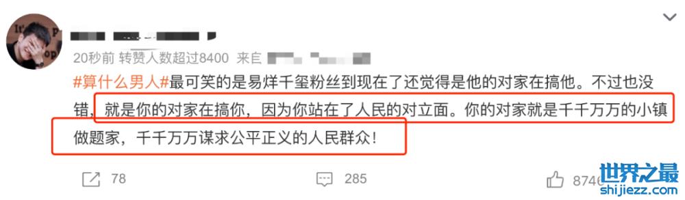另外,易烊千玺粉丝称,易烊千玺是被对家的粉丝故意黑,故意要“搞臭”他的名声。但有网友反驳:易烊千玺站在了人民的对立面,他的对家是千千万万的小镇做题家。