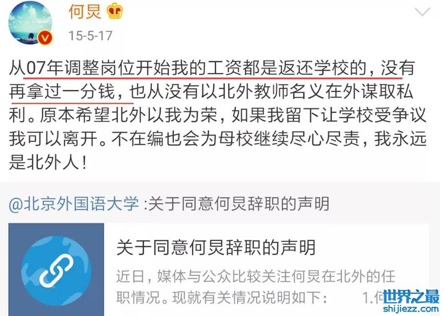 直到2015年5月13日的一封实名举报,让何炅的教师生涯结束了。当天,前北京外国语大学副教授乔木,实名举报何炅在北外“吃空饷”,称他享有编制却好多年没来上过班。