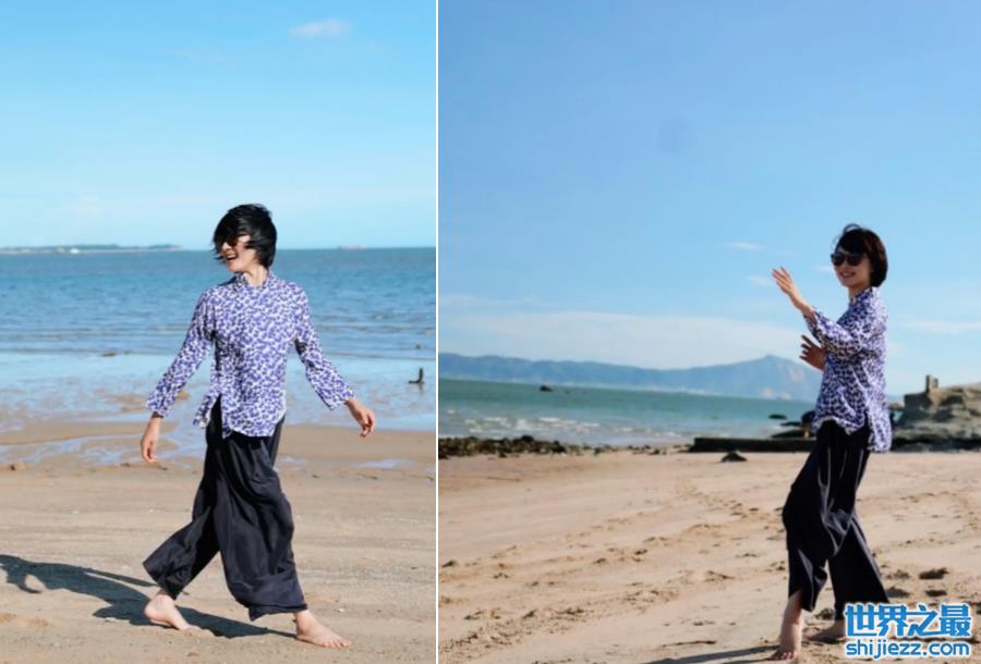 只见孙俪走在沙滩上面,并没有穿鞋,而是光脚踩在沙滩上,一点也不怕沙粘在脚底,走路的姿势也相当大气随意。被海风吹拂着脸颊的孙俪还模仿起了叶问的咏春招式,就像一位世外高人一样将脚垫起,手臂舞动,随性且优雅。