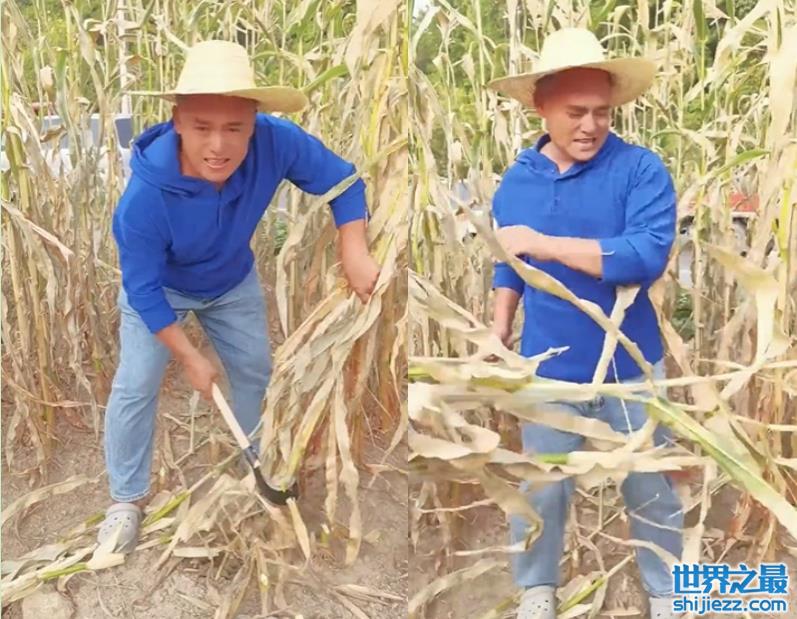 演员黑子干农活太娴熟!皮肤黢黑鞋子全是泥,手持镰刀狂砍玉米秆 ...