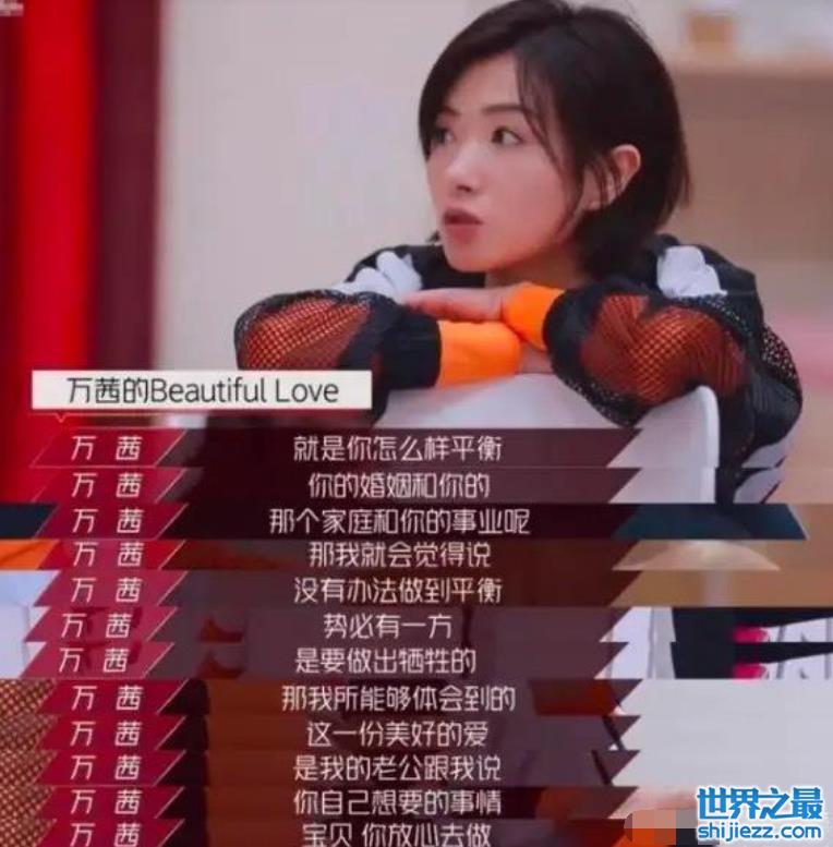 之前,万茜参加《浪姐1》时,就在参访中谈到老公对自己的支持,并称在婚姻生活中势必有一方要做出牺牲,但她的老公却非常支持万茜的事业,告诉她“宝贝,你放心去做”。