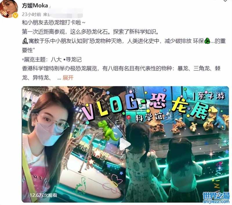 而通过视频,郭富城的两个女儿也罕见露面。虽然正脸被保护得很好,但从两个女儿的身高以及打扮来看,可以看得出郭富城一家对两个孩子非常宠爱,孩子也很天真活泼,在恐龙馆内表现出非常强的求知欲和探索欲。