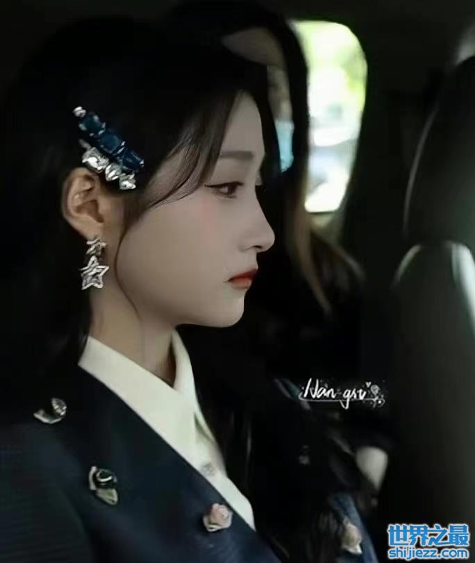 从侧脸看,关晓彤坐在车里抿着嘴巴,眼神黯然。