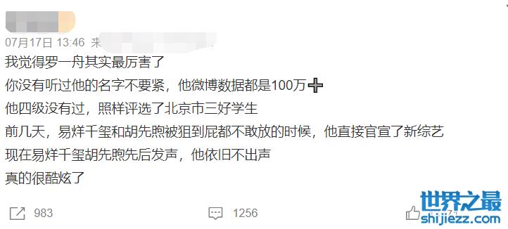 虽然罗一舟的粉丝在3人中是最少的,只有300多万,但是他的评论留言人数却是粉丝近9000万的易烊千玺都比不上的。
