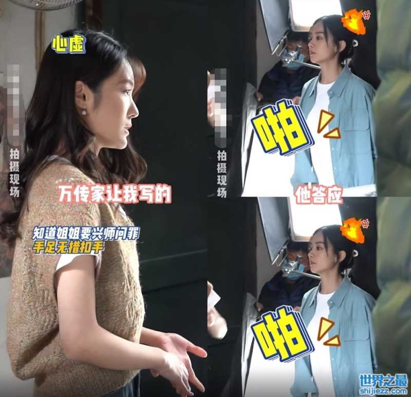只见画面中张可盈饰演的角色正在心虚地抠着手指,向赵丽颖坦白自己做的事。而面对妹妹这副心虚的样子,赵丽颖也是恨铁不成钢,直接一个大巴掌甩到了张可盈的脸上,冷着脸极为生气的模样。巴掌声极其响亮,想必也是真打,两位女演员可谓是十分敬业。