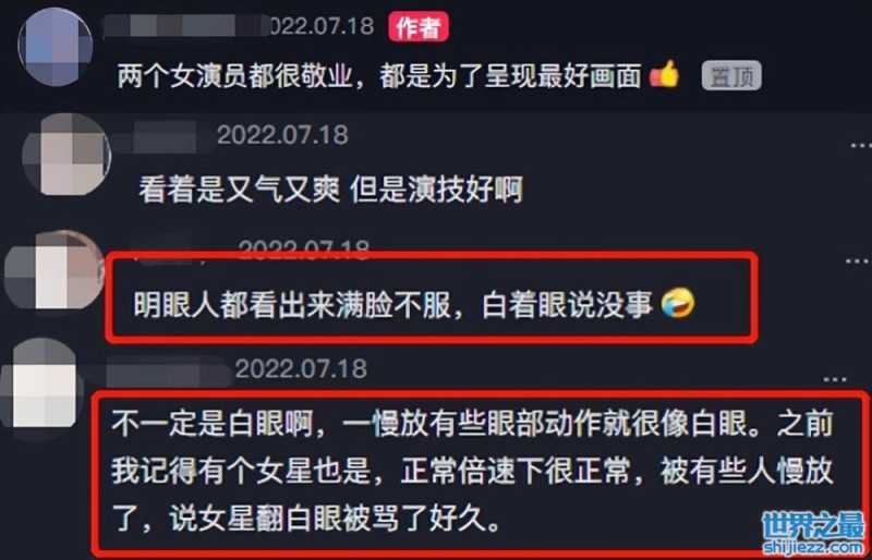 这段反应也被有心网友曲解,即使官方已经说明这是两位敬业的女演员为了呈现最好画面而真打,他们还是抓着张可盈被慢放后的反应,疑似翻白眼冷脸,在对张可盈冷嘲热讽。不过也有好心网友出来解释,这是慢放画面难免会出现的场景,正常倍速下其实很正常。