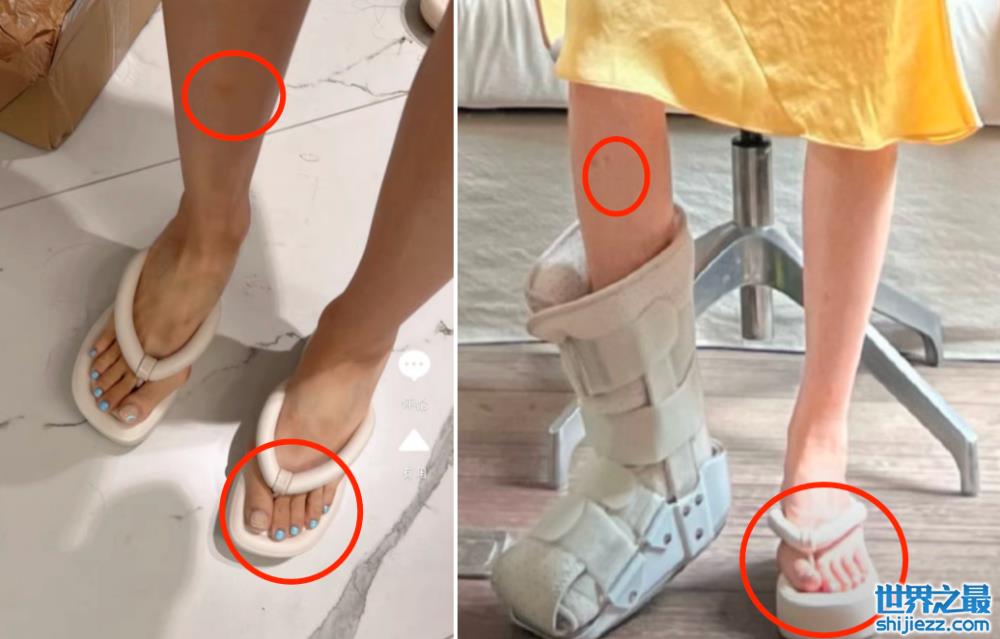首先是这个鞋子,晚晚也有一双同款鞋,两个脚的形状都十分相似,连脚指甲上面喜欢涂指甲油这一点都一模一样,甚至连腿上的伤疤都一摸一样。晚晚自称自己的脚是36码,而那双鞋的主人是40码,一时间引起网友的群嘲。