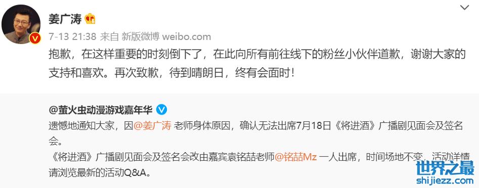 因为照片被遮挡了,所以无法证实是不是姜广涛本人,不过在当日,姜广涛曾以因身体不适的原因无法出席18日线下活动,该爆料者称他不是身体原因无法参加,而是被带走了。