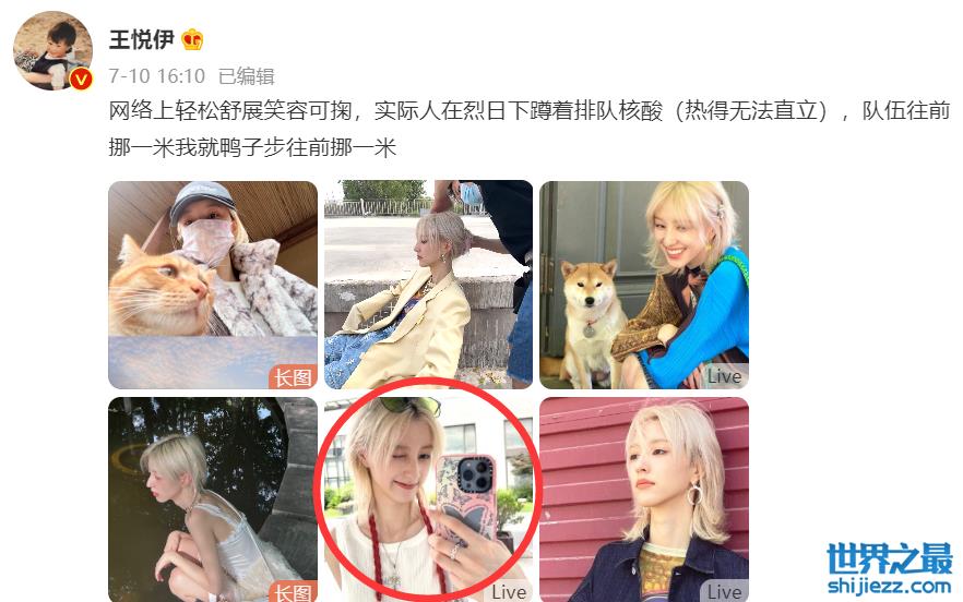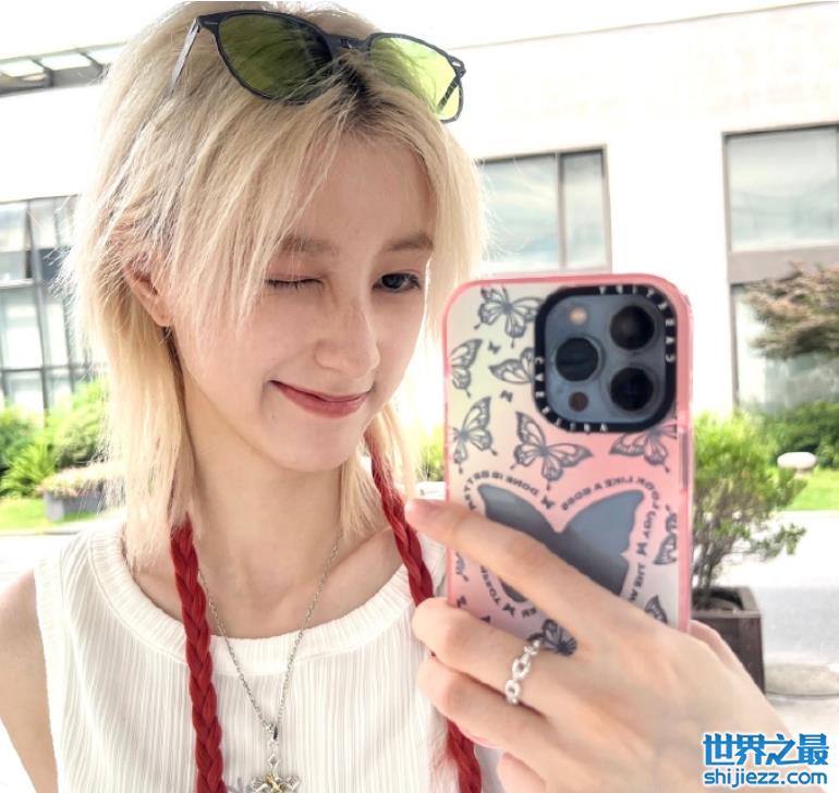 王悦伊的照片是她7月10日发布在自己在社交平台上的,只见她拿着手机自拍,还对着镜头眨眼卖萌,好心情都写到了脸上,注意看她的粉色蝴蝶手机壳,是某艺术家联名款,其售价在500元左右。