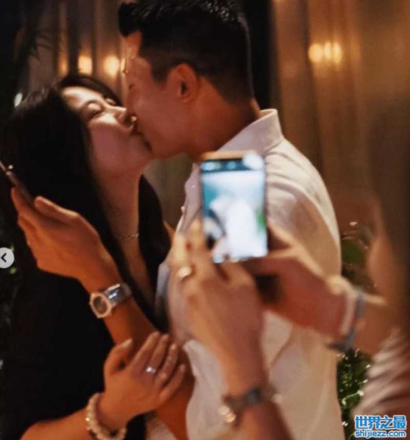 在这种氛围下,朱珠和她的老公王昀佳更是情不自胜,当着众人的面亲吻起来。王昀佳用手捧着朱珠的后脑勺,朱珠也凑上前去,两人忘我地闭上眼睛陶醉在这爱情的漩涡里面,旁边的人们也是纷纷为他们记录下爱情的一刻。