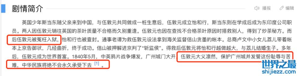 在《广州十三行》的剧情简介中,伍敦元先是“被冤入狱”,后又说他“大义凛然”,还誓死保护广州城。