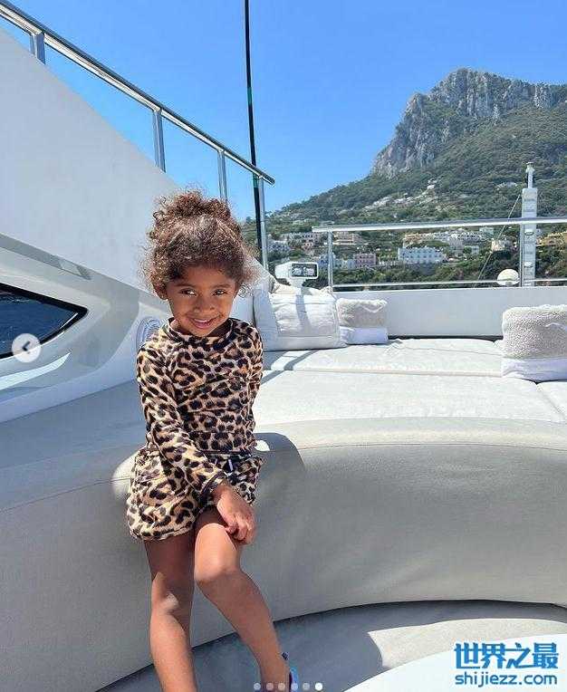 还有小朋友们在游艇沙发边上的照片,整个游艇奢华无比,属于富人的独特生活,小可爱穿着豹纹裙子非常养眼可爱。