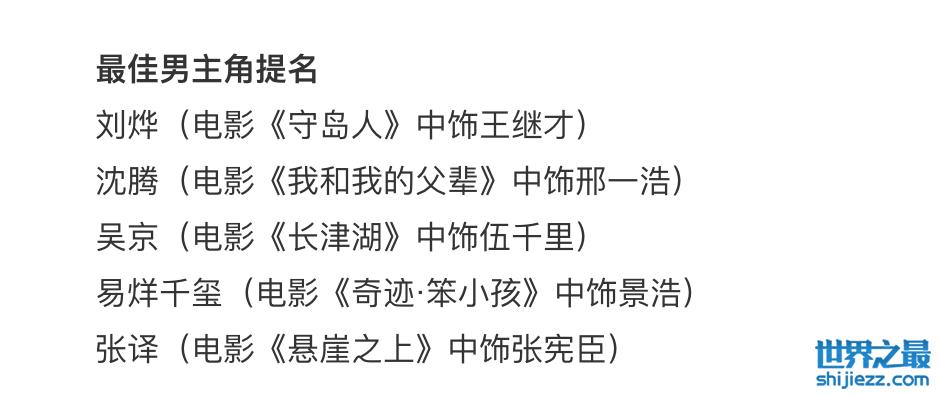 另外提名影帝的人有《守岛人》的刘烨,《我和我的父辈》沈腾,《长津湖》吴京,《悬崖之上》张译。