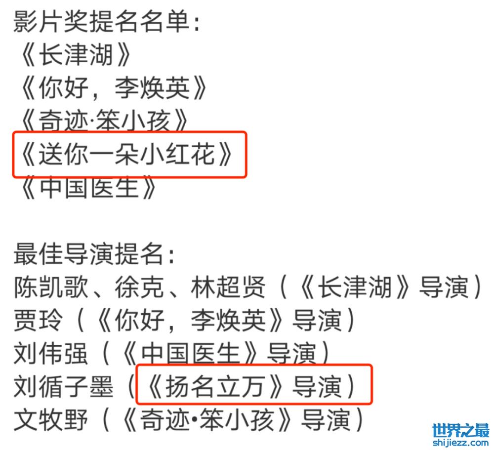 再看最佳影片和最佳导演提名,只有《扬名立万》和《送你一朵小红花》的差别。