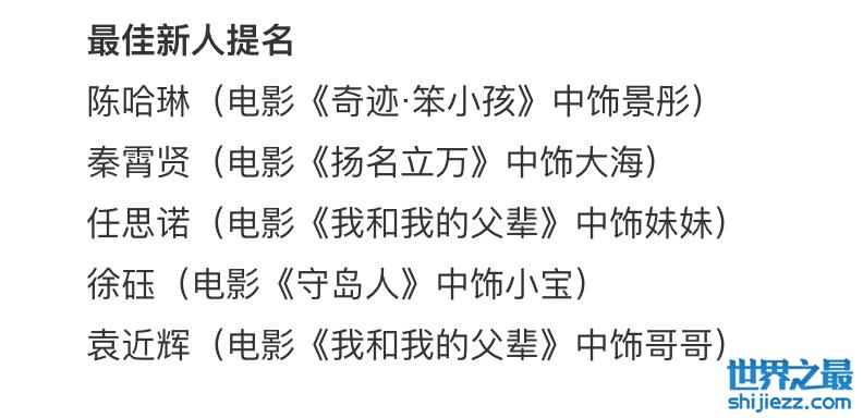 最佳新人也是乏善可陈,似乎随便颁给谁都没太大差别。