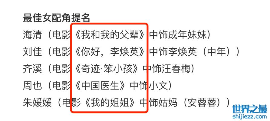 最佳女配角的提名,依旧在《奇迹·笨小孩》《中国医生》《我的姐姐》等这些热门影片中产生,给人一种“只有这些电影报名参奖”的错觉。