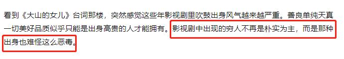 本来影视剧是为大众服务的,是要做到取自现实,高于现实的,然而就是这样一个地方,却成了最“不宽容”的地方,永远在向大众强调出身有多重要。
