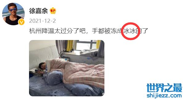 去年12月,徐嘉余直言“杭州降温太过分了,手都冻成冰冰的了。”以及今年1月份也曾两次提到“冰冰”,显而易见,“冰冰”的这两个字在徐嘉余的账号中出现的频率很高,很难不让人怀疑是不是就是故意的,毕竟王冰冰的名字中就有“冰冰二字”,这样一来,徐嘉余朋友圈签名上的冰冰也就对上号了。