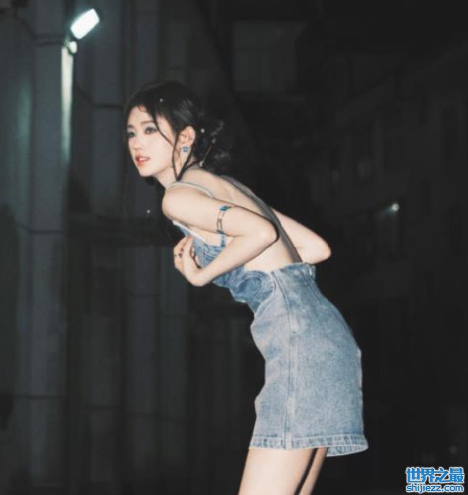 只见她扎了一个千禧风的丸子头,身上戴着很多配饰,整个人看起来十分酷。上身穿着一个牛仔材质的蝴蝶抹胸,露出精致的锁骨,锁骨沟深得好像能养鱼。