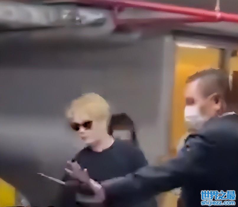 现身地下车场的王嘉尔当天穿着打扮十分抢眼,上身穿着黑色短袖的、他下身搭配同色系的胯裆裤,脚踩一双红黑渐变的运动鞋很是舒适,一头扎染的黄发在人群中很是抢眼。