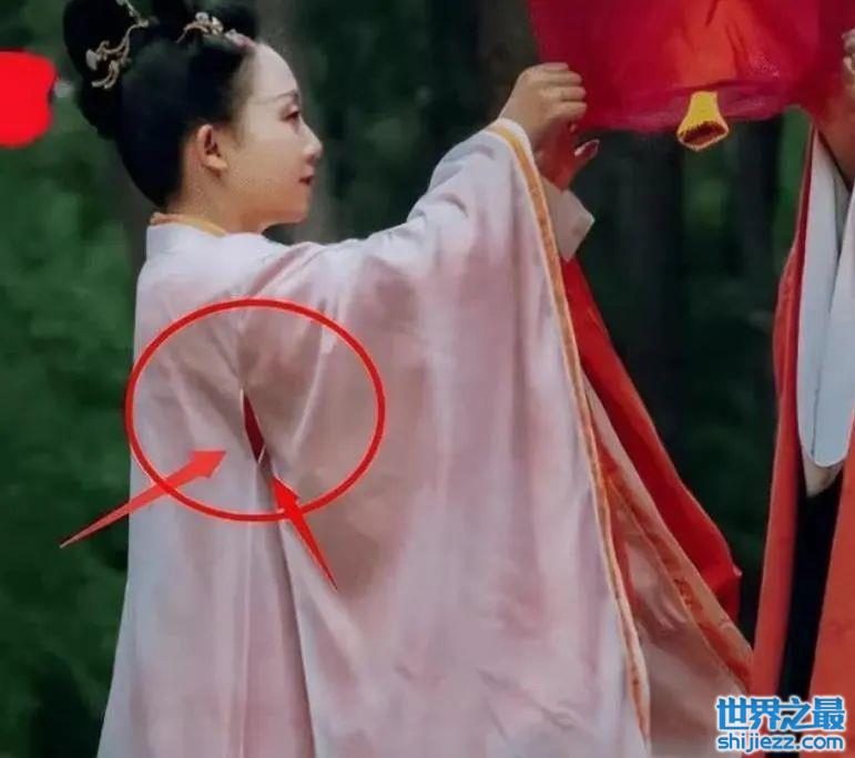 当她抬手的时候,可以明显看到衣服腋下有开口。