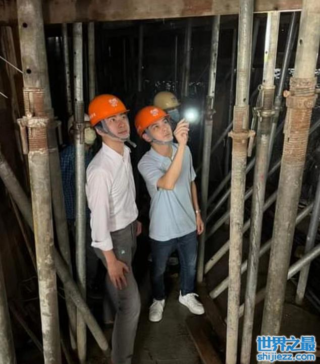 据悉两人都是该建筑公司的老板,此番是来亲自视察工地。又见林志颖紧接着举着手电筒在黑漆漆的工地上检查着什么。周围全是钢管,装修未成的工地还不是很干净,他们二人就顶着满身脏污在此巡视,身后还跟着公司的建筑工人。
