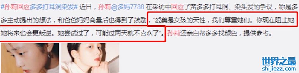 面对两个女儿的爱美天性,作为妈妈的孙莉面对网上的质疑并没有选择置之不理,而是大方回应,孙莉曾发文称:“我们尊重她们,你现在阻止她她将来也会更叛逆。她尝试过了,可能过两天就不喜欢了”,这样的发言也不经令人深醒。
