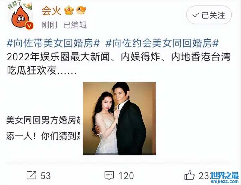 7月21日有八卦媒体爆料,向佐约会美女同回男方婚房,两人超亲昵。