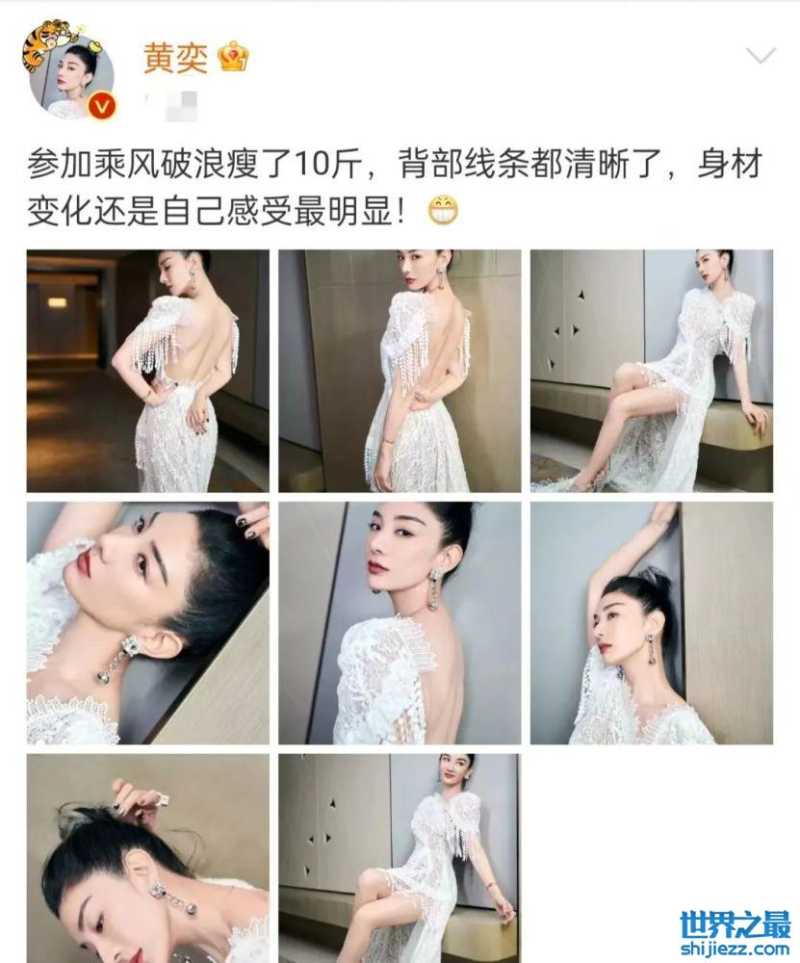 黄奕曾发文表示,参加《乘风破浪》瘦了十斤,背部线条变得更清晰,自己身材的变化,还是自己最清楚。
