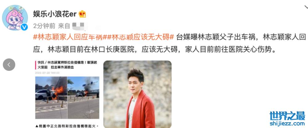 艺人林志颖突发车祸,车头起火现场一片狼藉,家人急忙赶往医院 ...