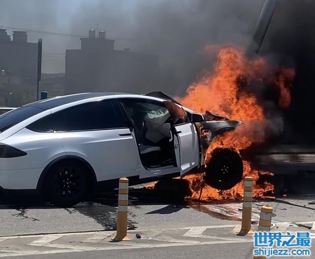 随后车辆便起火燃烧,整辆车都陷入火海,父子2人一度受困在车内,所幸被路过民众看见,紧急将2人拖出。