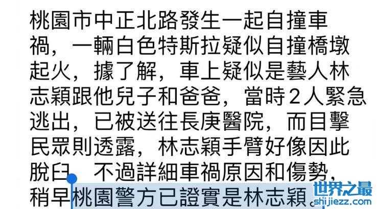 目前林志颖的经纪人与其家人纷纷报平安,形容林志颖和儿子已经被紧急送到了医院进行治疗,目前已经平安。