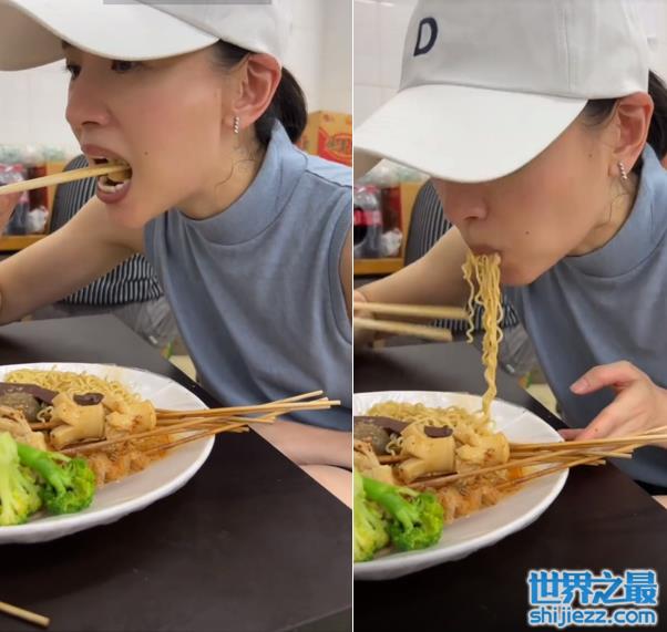 随后董洁就开始吃起了她钟爱的麻辣烫,或许是骑行太累,坐着的董洁可以看出头发都黏在了脖子上,紧接着董洁就开始不顾形象地大口往嘴里塞着麻辣烫,不过吃相还是很好看的,像小松鼠。董洁坐在店里吃麻辣烫时,都没有人前来打扰,想必董洁也是店里的常客了。