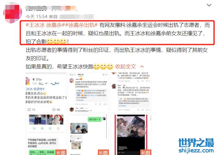 首先是有网友爆料称徐嘉余在天津全运会的时候出轨了志愿者,引起了众多网友热议。