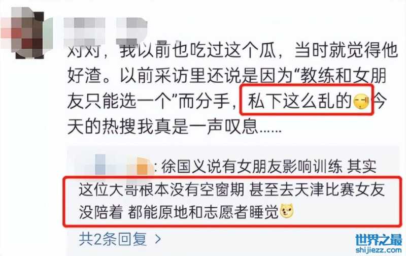 同时有许多网友也站出来称自己也吃过这个瓜,而爆料徐嘉余出轨志愿者的网友也曝出了更多细节,表示徐嘉余其实根本就没有空窗期,甚至去天津比赛,在没有女友陪同的前提下,也管不住自己,直接出轨志愿者。