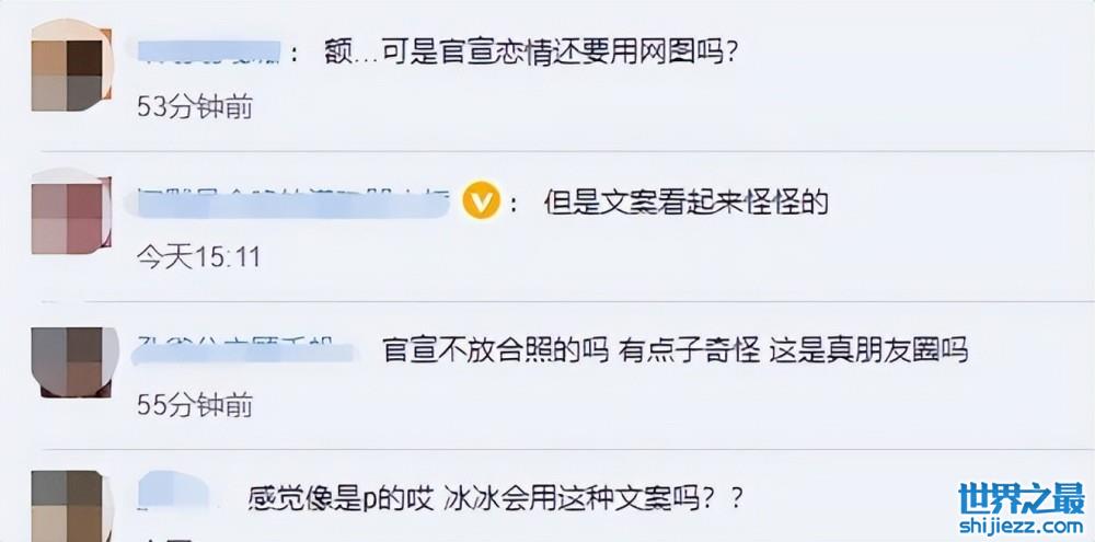 不过那时许多网友都很是怀疑该条官宣朋友圈的真实性,表示情侣官宣图应该一般都是用合照,文案也不似冰冰的口吻。不过当时也有许多cp粉表示自己嗑的cp成真了,非常雀跃。