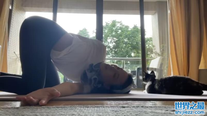 不过一旁的宠物猫却并不懂得这一切,只在舒淇做瑜伽时抽空钻到舒淇身下,寻求抚摸。这可把舒淇搞得心态全无,只能把猫咪抱到旁边,但每一会这只小花猫就会找机会重新回到舒淇身下,弄得舒淇只能断断续续地做着瑜伽。