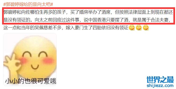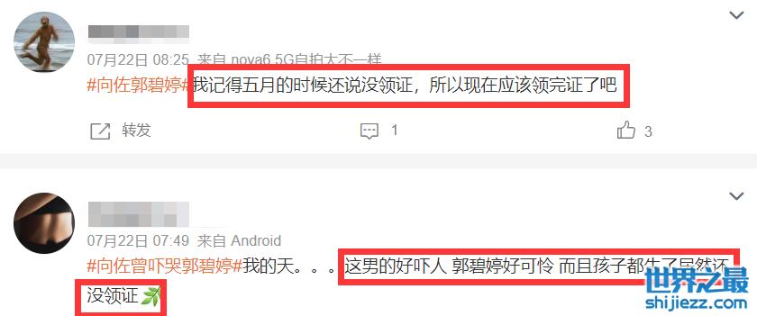 目前两位当事人都没有发声,事情恐怕还有后续,就看狗仔是否会公开手中的视频了,另外,有网友还猜测郭碧婷应该到目前都没有领证,此前向太也说了,两人摆了酒席就算结婚了,而后一直都没有回港办理相关手续,所以究竟有没有领证呢?