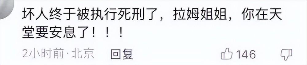 网友留言:坏人终于被执行了死刑,拉姆姐姐你在天堂要安息了。一切都已经真正地结束掉了,最苦的是那两个孤单的孩子吧。