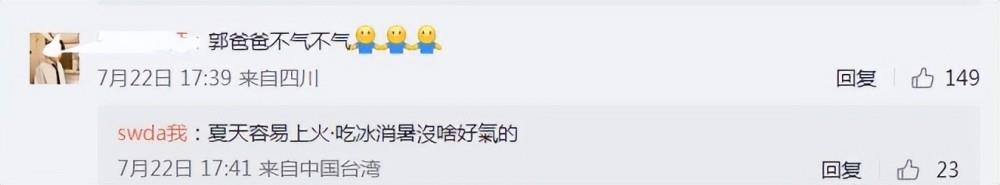在22日郭爸还是这样子发文的:吃冰消消火气!