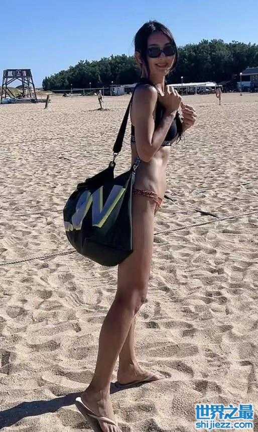 曹格老婆罕晒性感美照!穿比基尼在海边游玩,一双美腿沾满沙子 ...